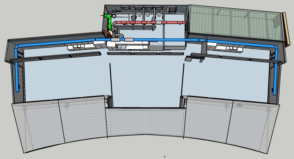 The fresh air is filtered and delivered to the occupied areas then passes through the whole building to be extracted from the wet areas. Because there are no significant leaks through the building envelope the fresh air rates can be designed with certainty to maintain the carbon dioxide and other undesirable gasses below critical levels using very quiet air flow rates.