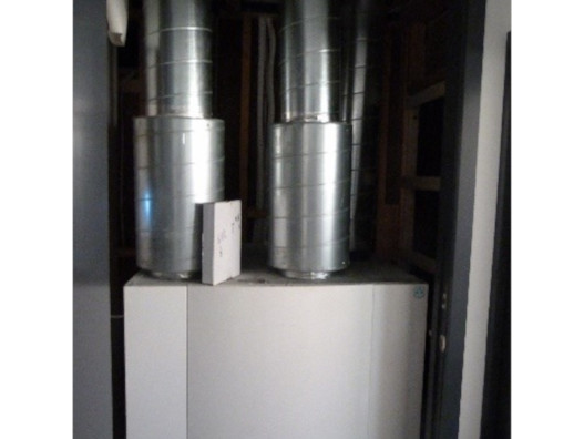 In a school, a large amount of air must be expelled to prevent the build-up of carbon dioxide and other gasses. Normally the heat would be expelled with the air but by passing it through a a heat exchanger 85% can be recovered and transferred to the incoming fresh air.
