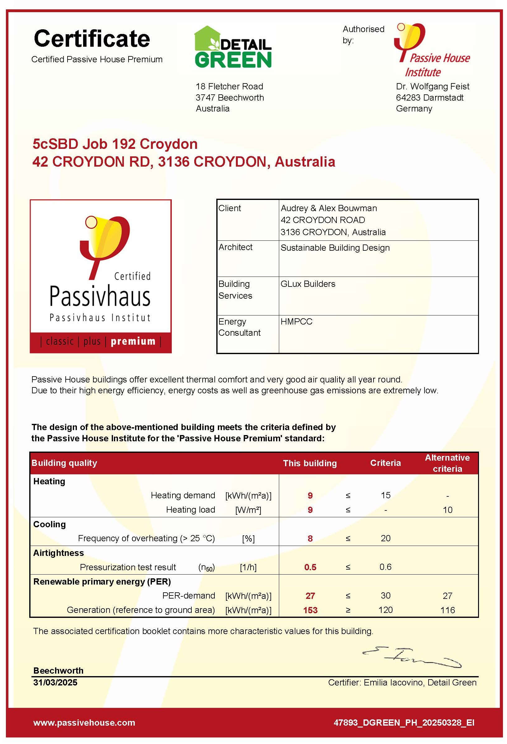 CROYDON ROAD PASSIVHAUS PREMIUM