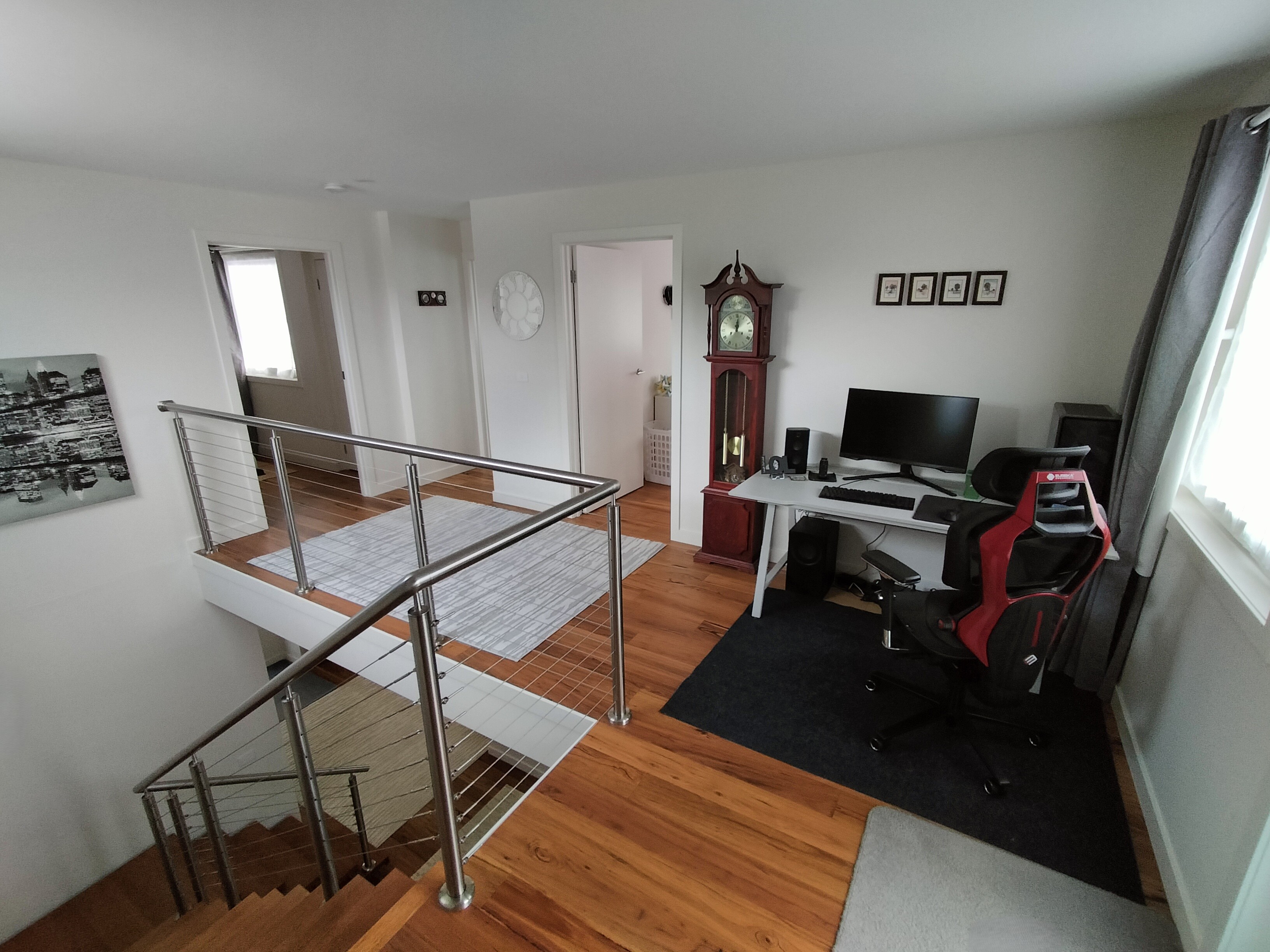Construction is standard 90mm timber frame with glass wool insulation supplemented with foil faced PIR which is taped airtight to form the vapour membrane to walls, ceilings and floor. PIR is laid over the particleboard structural deck of the raised floor and them overlaid with the floor finishes. Window frames are Upvc triple glazed against road noise.
